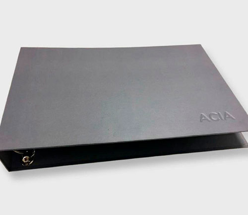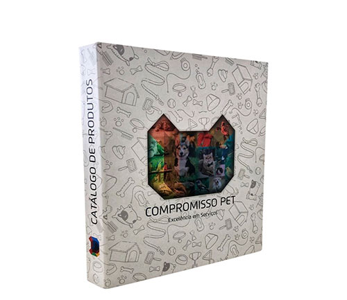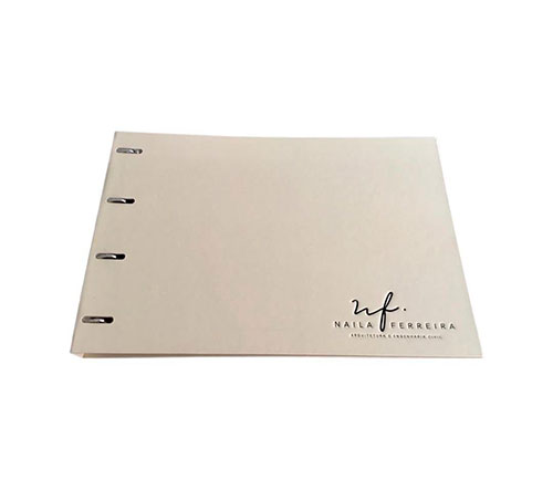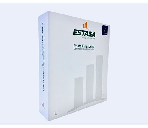 Descrição: Pasta Fichário **Cartonada confeccionada em papelão Paraná e revestimento em papel, pelo método de colagem, podendo contar com impressão em offset, digital ou serigráfica (Silk – Screen) ou produzidas por papéis especiais de várias cores, desenhos e texturas.