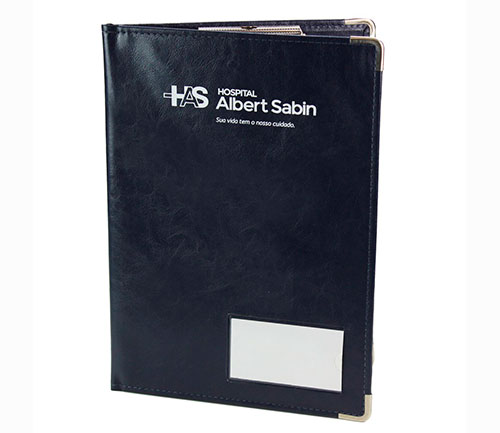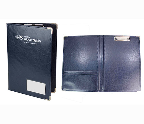 Descrição: As Pastas Fichário Prontuário Médico, são confeccionadas pelo processo de *costura, em papelão Paraná, podendo ser revestidas com matérias primas de maior resistência, como couro sintético. Podem ser personalizadas com a logo, a Identificação dos quartos ou sem personalização. (Itens opcionais: Podem conter argolas para fixação dos papéis ou romeu e julieta de plástico ou metal. Também podem ter bolsos ou visores para identificar o paciente ou o leito).