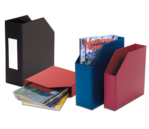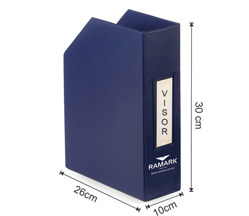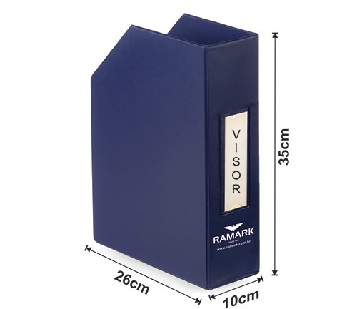 Descrição: Os Porta Revistas são confeccionados pelo processo de *solda eletrônica, em papelão Paraná, revestido em laminado de PVC (vinil) de diversas cores. Podem ter a logomarca da empresa ou os assuntos que utilizam pelo processo de serigrafia (silkscreen), ou auto personalizados através do visor que o acompanha. Práticos, modernos e desmontáveis para facilitar a sua estocagem. Perfeitos para organizar suas revistas, catálogos, livros e documentos. Veja as medidas disponíveis.